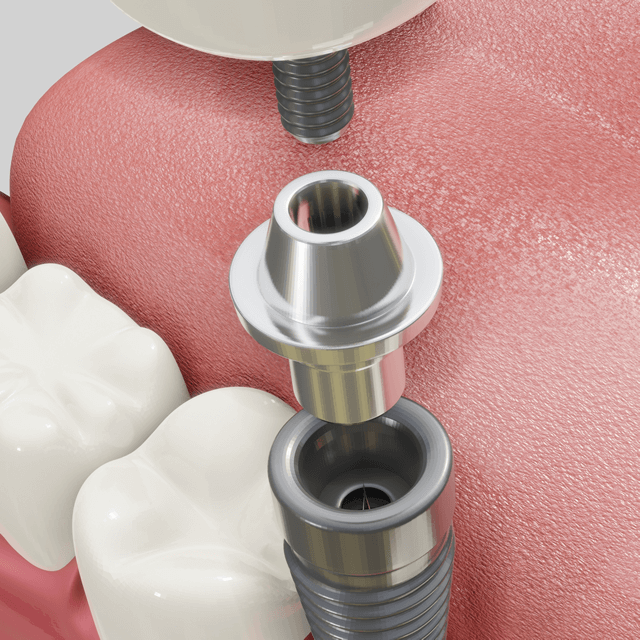 インプラントが骨と結合した後、歯ぐきを開いて人工歯を装着できる形に整える処置を行います。このとき「ヒーリングアバットメント」という部品を装着し、歯ぐきの形を整えていきます。